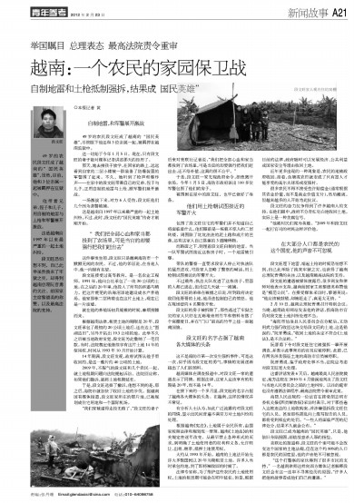 这是越南自1997年以来最严重的一起土地纠纷,不过,此时,段文旺的“国民英雄”传奇才刚刚开始。