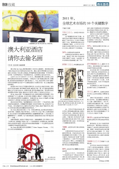 澳大利亚Art Series酒店集团拥有3家艺术主题酒店,每家都是受某个澳大利亚当代艺术家的启发而设计的。最近,他们对梦想着当艺术品大盗的人们发出了无比诱人的挑战:有种就到他们的酒店里偷一件传奇街头艺术家、“艺术界恐怖分子”班克斯的作品。此举顿时让他们出尽风头。
