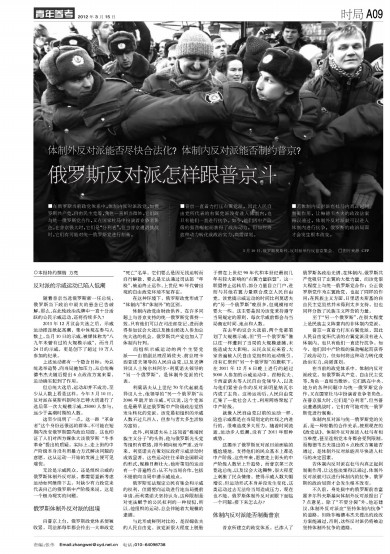 ■普京一直着力打压右翼党派,因此人民自由党所代表的右翼党派没有进入体制内,也只有他们一直进行抗争。如今,他们因中产阶级的强劲崛起而获得了政治动力,但如何将这种动力转化成政治实力,尚需谋划。