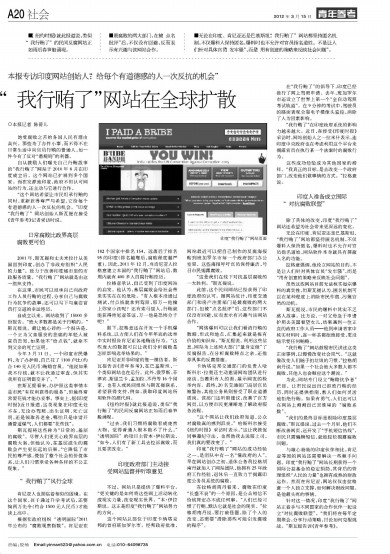 ■《纽约时报》就此报道说,类似“我行贿了”的民间反腐网站正如雨后春笋般涌现。