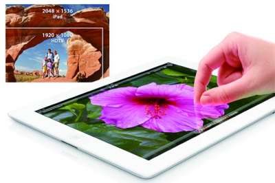 何谓“视网膜显示屏”?该词是苹果在发布iPhone 4时杜撰出来的,意为在视距之内肉眼无法分辨单个像素的显示屏。与前两代产品相比,新iPad的屏幕大小虽然未变,但屏幕分辨率达到惊人的2048×1536像素,平均每英寸264万像素,比全高清的高清晰度电视(HDTV)的实像际像素还要高。苹果全球市场副总裁菲尔·席勒在介绍时夸曰:“移动设备前所未有。”