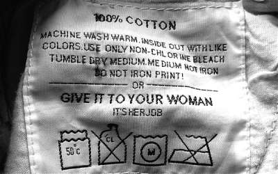 没错,这是一个洗涤说明。不过,除了详细标明洗涤注意事项外,它还给出了一个离谱的选项——“(如果你搞不定)就把它丢给你的女人,因为这是她的工作”。