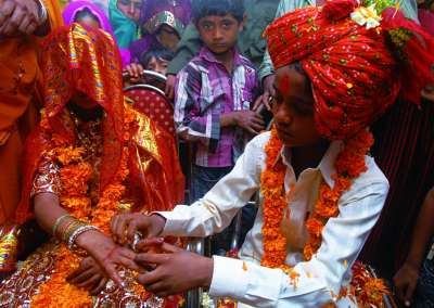 被称为“妓女村”的Vadia,距离古吉拉特邦主要商业城市艾哈迈达巴德约250公里,这里的妇女从事性交易,已成了延续数代的传统。女孩们长到12岁,就可能被自己的家人逼迫从事“皮肉买卖”。如此繁荣的卖淫业让村子恶名在外,从卖淫者家庭出身的女儿们也很难找到姻缘。让这21名女孩走进集体婚礼,与新郎喜结连理,就是为了摆脱这一传统。