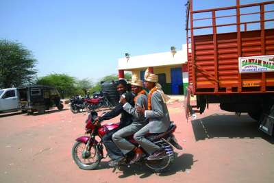 两位新郎搭着摩托车去婚礼现场。 |