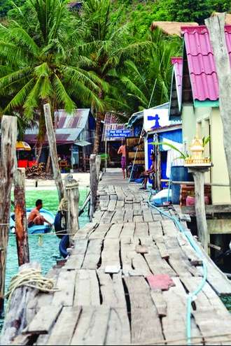不远处的几座袖珍旅馆就搭在水中的柱子上,给人摇摇欲坠之感。不必担心,房子足够结实,加上前厅开阔,足不出户就能将南海尽收眼底。我、丈夫和两个孩子住在一间其中名叫“海鸥”的小木屋里。边看着木质渔船在天边缓缓移动,边品尝店家为我们准备的清蒸海鲜。没有人缠着我们出售纪念品,也没有人主动找上门来充当导游,从远古时代至今,格布的生活方式仿佛一直未曾改变。