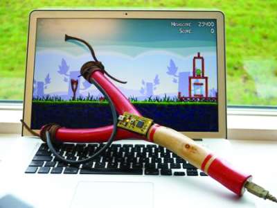 这款由国外游戏爱好者制作的USB弹弓就是专门用来玩《愤怒的小鸟》的,它基本上可被视为是一个鼠标,内置的传感器能够将弹弓的动作转换为鼠标的输入,从而让您换种方式玩游戏。