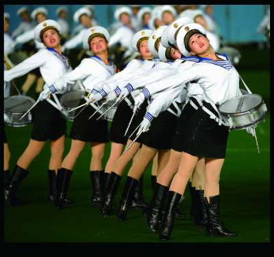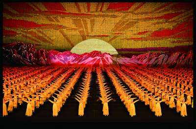 德国摄影师维尔纳·克兰维弗戈尔获得特权进入朝鲜,拍摄了神秘壮观的朝鲜特色演出——大型团体操。这项团体操由超过10万名体操运动员、杂技演员和舞蹈演员等共同完成。