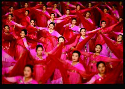 除了常规表演,最壮观的瞬间是3万名儿童聚集到一起,组成世界上最大的图画。这幅巨大的马赛克图案是由每个人拿着一本书完成的,当他们每人翻动自己手中170页图书中的一页,画面就会运动起来,变成一部动画。