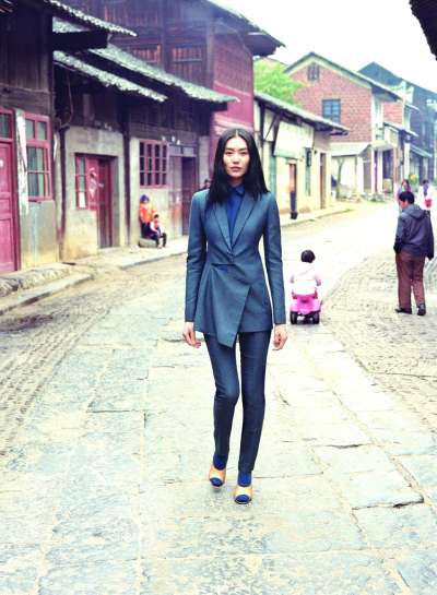 在湖南永州一辆租来的面包车中,刘雯把腿伸进一条蓝色马克·雅各布的裤子中,这样换衣服的方式对于名模来说,也许并不算奇怪的事情。刘雯轻快地说:“这(造型)是假小子风格,我觉得这就是我自己的风格。”