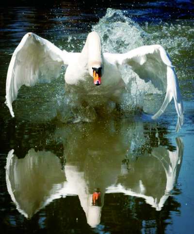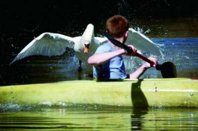 这位名叫戴维斯的20岁男子被天鹅巨大的双翅拍落水中,他心有余悸地表示,自己在运河上独划了5年,还是第一次碰到这样的事,他再也不会到这段运河来划船了。