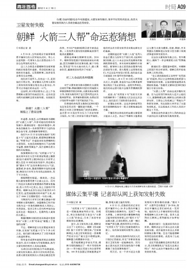 台湾《自由时报》综合外电报道说,火箭发射失败后,很多不切实的消息说,负责火箭发射的执行人员将会被送往劳改营。日本《产经新闻》则引述专家说法称,三名负责火箭发射的朝鲜高层很可能因此遭整肃。