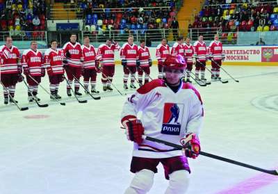 5月7日,普京就职俄总统后在冰球赛场上放松了一把。照片摄于莫斯科的第四届业余冰球联赛。 |