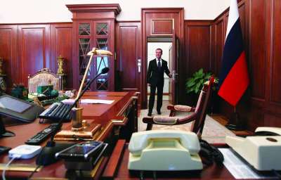 5月7日,梅德韦杰夫在普京就职典礼后,最后一次参观自己的总统办公室。 |
