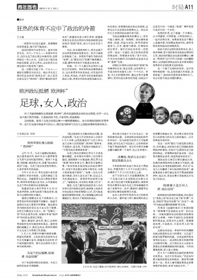 对下月就将揭幕的足球盛宴“欧洲杯”,欧洲各国政要近来的关注程度,似乎一点儿也不逊于铁杆球迷。只是他们给予的,不是支持,而是抵制。