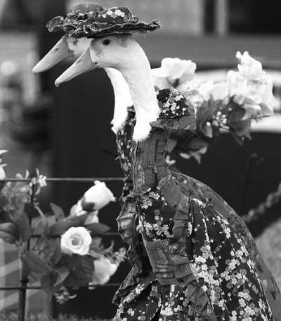 别看鸭子走起路来一摇一摆的,但放在T台上绝对有世界超模的范儿。早在30年前,颇有生意头脑和时尚嗅觉的澳大利亚人哈灵顿,就已发现了鸭子在走猫步方面的天分,他迅速切入这一领域,组建了一支由三只鸭子组成的时装模特队。