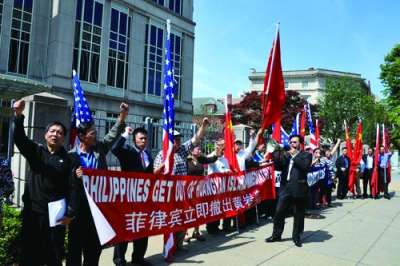 而各地响应的“全球抗议”活动的气势,或许能从中国使馆人员在微博上的描述一窥究竟。5月10日,一群菲律宾旅意侨民在罗马的中国驻意大利使馆附近抗议,要求中国“尊重菲律宾的领土和主权”。