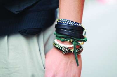 “男士配饰”(mewelry)这个新名词也使用得越来越广泛。如今,小指戒指有了手链与之搭配。银行家最爱的品牌托德斯(Tod's)最近推出了皮质手链,Burkman Bros则推出了编织绳手链。