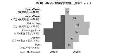 未来,随着中国城镇家庭收入结构变化,年收入在20万元的城镇家庭数量将有所提高,为次中高端市场提供了良好的物质基础。