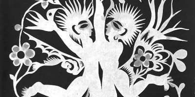剪纸起源于中国东汉年代,一般张贴于门窗以示好运。但西亚蝶描绘的不是通常装饰性的花鸟虫草,他通过大胆的图形描绘同性恋性爱——在中国,同性恋长期以来被视为禁忌。