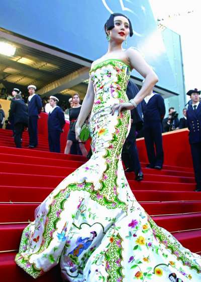 在今年戛纳电影节开幕式上,中国女星范冰冰依然最抢眼。继“龙袍”、“仙鹤”造型后,这次她身着“China瓷”抹胸长裙,搭配唐朝仕女发型,带有浓郁的“中国风”,迅速登上欧美顶尖时尚杂志和时尚网站。