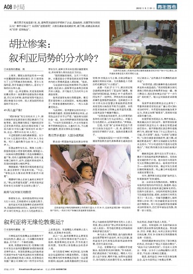 上周末,噩耗从叙利亚传来——叙中部霍姆斯省的胡拉镇在25日夜间发生了上百平民被杀害的惨剧,更令人发指的是,其中有超过半数的人,是手无寸铁的妇女和儿童。