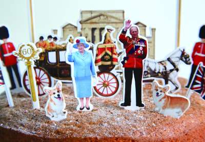 英国推出王室蛋糕装饰品,让民众也能“尽享女王登基60周年庆典的豪华现场”。这套装饰品除了女王、爱丁堡公爵、白金汉宫、皇家卫队,还包括女王心爱的威尔士矮脚犬。 |