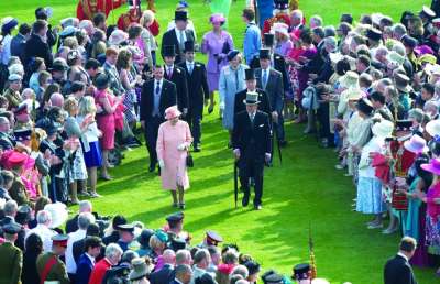 5月22日,英女王(中左)在白金汉宫夏季游园会上迎接宾客。约8000人盛装出席了这次游园会,广阔的草坪变成了华美帽子的海洋。 |