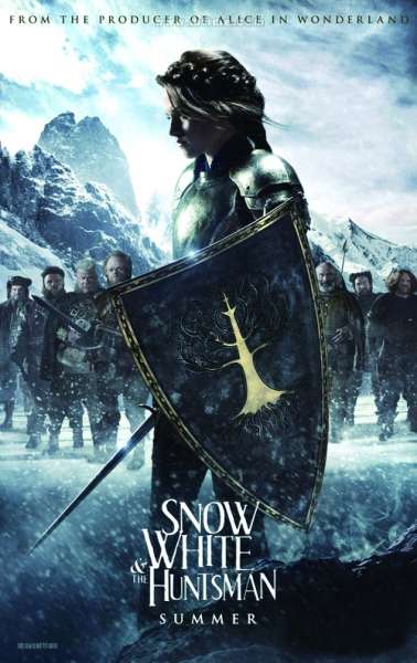 这是一部颠覆性的带着阴沉色调的影片。在海报上,白雪公主身着中世纪风格的铠甲,手执长剑与盾牌,和同样一身戎装的7个小矮人站在茫茫雪地中,看起来倔强而坚毅。