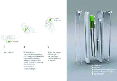 这款靠手摇就能产生电能的电视“摇”控器(Shake Control),就完全脱离电池的束缚,想要转台或是调整音量,只要摇往不同方向即可。