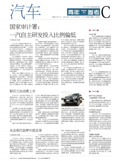 国家审计署:一汽自主研发投入比例偏低