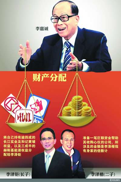 83岁的亚洲首富李嘉诚5月25日公布了他的接班计划,“长和系(长江实业有限公司以及和记黄埔有限公司)”资产由长子李泽钜接管,次子李泽楷的公司业务将获得全力资助。