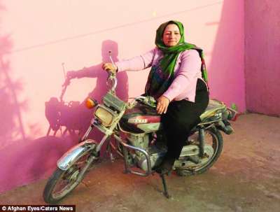 对许多阿富汗村民来说,女性骑摩托车是难得一见的景观。不过卡齐萨达明白,阿富汗依然是个保守的社会,每次外出她都穿上男人的长袍,戴上男人的头巾,甚至粘上假胡子。如果遇到顺路的行人,她会让他们搭便车。她得意的是,从来没有人看出她是个女人。
