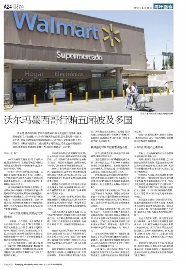 墨西哥事件并不罕见。据美国政府部门人士透露,对沃尔玛行贿调查的范围,已扩大至巴西、中国、印度及南非等国家和地区。