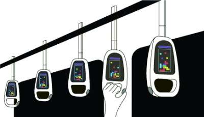 工业设计师钱江(音译)设想将地铁吊环做成视频游戏机。吊环上设计有按钮,但没有操纵杆,乘客需要转动手柄完成操作。即将到达目的地时,吊环还会提醒你下车。