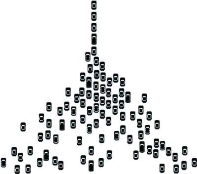 引发交通堵塞的原因很简单。一个司机和前车太近了,不得不刹车,后面的、更后面的司机也这么做,于是引发了连锁效应。许多做交通模型的人都认为,自适应巡航控制系统(A.C.C.)的自动控制前后车距功能,是解决交通堵塞的关键。模拟研究发现,如果高速路上20%的车辆装备A.C.C.,某些交通堵塞仅通过协调车速就可以解决。