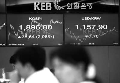 6月18日,韩国首尔,因希腊支持国际救助的党派在大选中获胜,缓解了投资者对希腊退出欧元区的担忧,韩国股市当天收盘强势走高,综合股指收盘报1891.71点,创5月16日以来的最高水平。