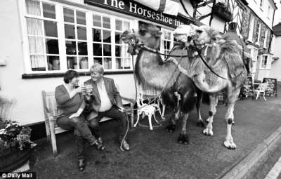 英国沃里克郡的一家人对骆驼可谓情有独钟,他们不但用骆驼接送孩子上下学、上街购物,还会时常带着骆驼一起到酒馆“喝一杯”呢。