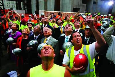 开发商席尔瓦斯坦出席封底仪式,神色肃穆。 |