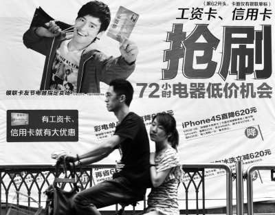 据里昂证券2011年进行的一项调查显示,中国城市中产阶级家庭中约有3/4有信用卡。但据波士顿咨询公司2011年进行的一项调查显示,只有9%的中国城市家庭今年确实计划使用信用卡消费。