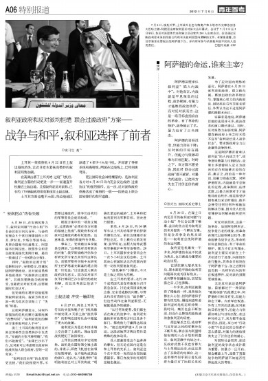 同时,“叙政治过渡计划”也新鲜出炉。安南提议,组建包括阿萨德政府、反对派成员和其他成员的“民族联合过渡政府”,其成员要既能为政府接受,也能获反对派支持,还要被国际社会认可。