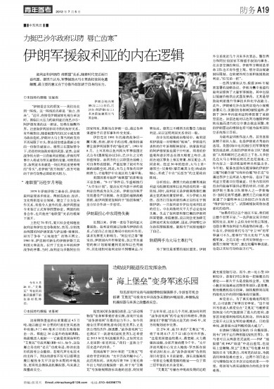 叙利亚和伊朗的“准联盟”关系,随着时代变迁而日益巩固。德黑兰认为,军事援助大马士革政权使其免遭颠覆,最主要的意义在于分散外部加诸于自身的压力。