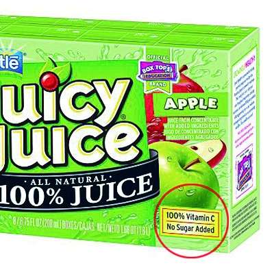 这类产品的包装上,往往印满了花花绿绿的各色水果。不过就算是标注“用真正的水果制成”的产品,也不意味着含有包装上的所有水果种类。制造商都会列出商品所包含的一系列成分,比如脂肪和胆固醇,但不见得会透露水果和谷物的比例。今年,美国加州有一名女子对Fruit Roll-Ups公司提起了诉讼,因为其产品是“梨浓缩”制成,其中却有草莓味,而又不含草莓成分。