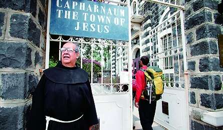 往前再走半英里,就能闻到从耶稣小径终点——迦百农镇上传来的喧嚣了。据《圣经》记载,耶稣结束云游生活后定居此地,他的布道大部分在这里进行。眼看终点在望,大家也就不再急着赶路,索性先坐下来歇脚,一杯以色列产的“金星”啤酒下肚,3天来的倦意顿时溜走了不少;远处餐馆散发出的香气,更让那些不够淡定的人垂涎欲滴。