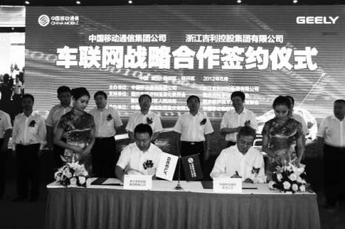 作为中国最大的民营自主品牌之一,吉利汽车6月底与中国移动签署了车联网业务战略合作协议。双方表示,将共同打造行驶更安全、驾乘更舒适、科技感更强的新一代智慧型汽车,联手推动车联网在中国的发展,加速我国车联网产业升级和信息化建设,为中国消费者提供更丰富、更智能的驾乘体验。