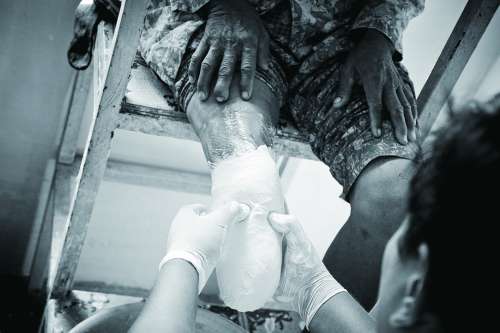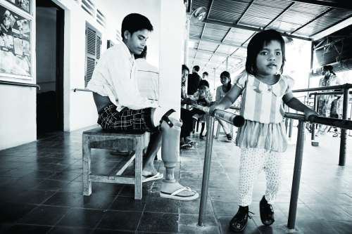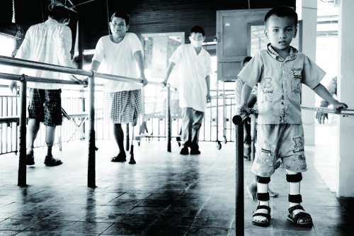 走进磅湛的“排雷工作旗舰组织”——柬埔寨地雷行动中心,可以看到很多地雷受害者在等待接受治疗、进行复健。这里静静地展示着地雷给柬埔寨人带来的生命隐患。