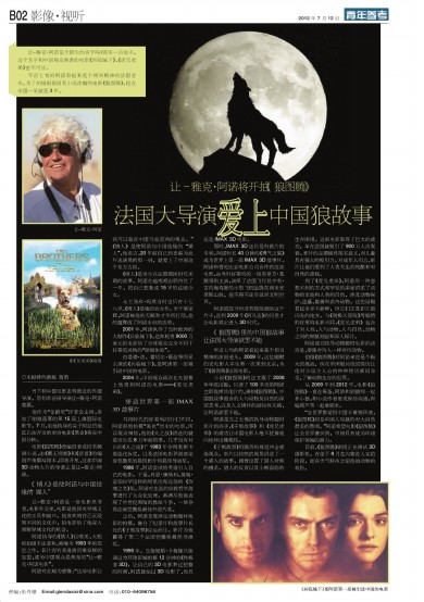 年近七旬的阿诺看起来是个相当精神的法国老头。2009年,这位幽默的老电影人平生第一次来到北京,为了《狼图腾》这部电影。