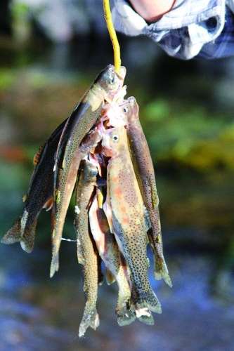 我本人钓术平平又缺乏耐性,之前在墨西哥、阿根廷巴塔哥尼亚高原乃至美国境内云游多日,总共才钓上过一条鱼。这回在小溪边只待了两个小时,就收获了几十条。当天晚上,每个客人都品尝到了割喉鳟(译注:又称克拉克大马哈鱼,分布于洛基山脉周边,属于上好的食材)的美味;当然,这也说明杰克之妻贝琳达的厨艺确有独到之处。