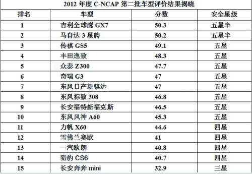 7月6日,中国汽车技术研究中心发布了2012年C-NCAP第二批车型评价结果。据悉,这是按照2009年版管理规则进行评价试验的最后一批车型。