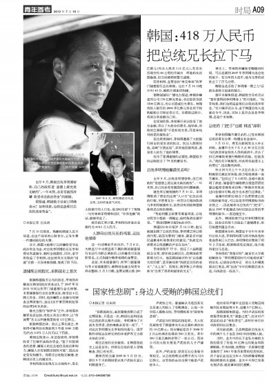韩国:418万人民币把总统兄长拉下马
