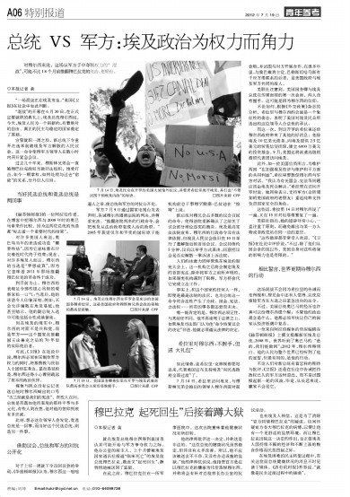 但在埃及的现实中,穆尔西的对面不是共和党,而是军方——这个国家在推翻国王法鲁克之后的70年里的实际统治者。